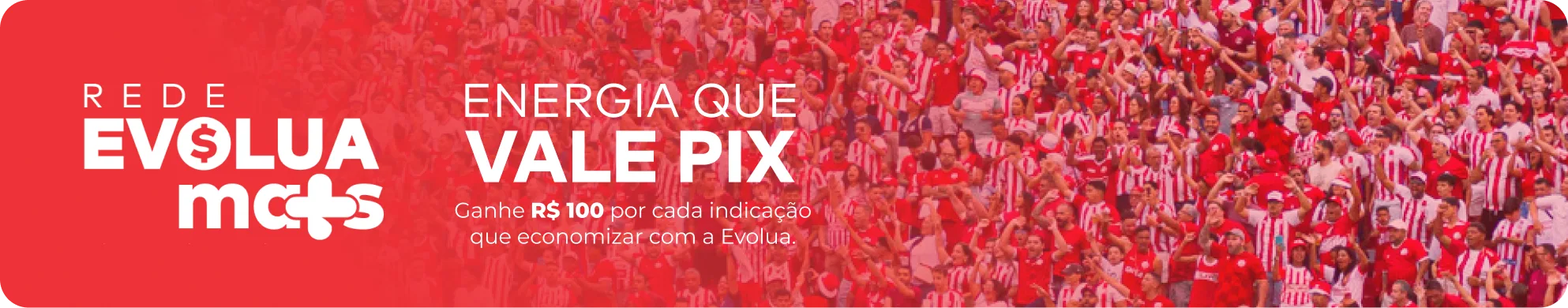 Quem é cliente pessoa física da Evolua participa da Rede Evolua+, o programa de indicação que dá R$100 no Pix por cada amigo que começar a economizar com energia limpa.